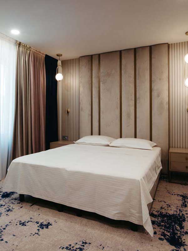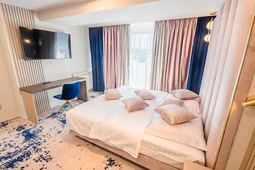 Vă pune la dispoziție camere cu un design aparte, rafinate, amenajate conform celor mai înalte standarde, astfel încât să vă odihniți într-o atmosferă primitoare.